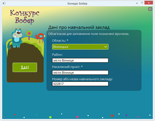 8. Введіть дані про заклад за зразком: